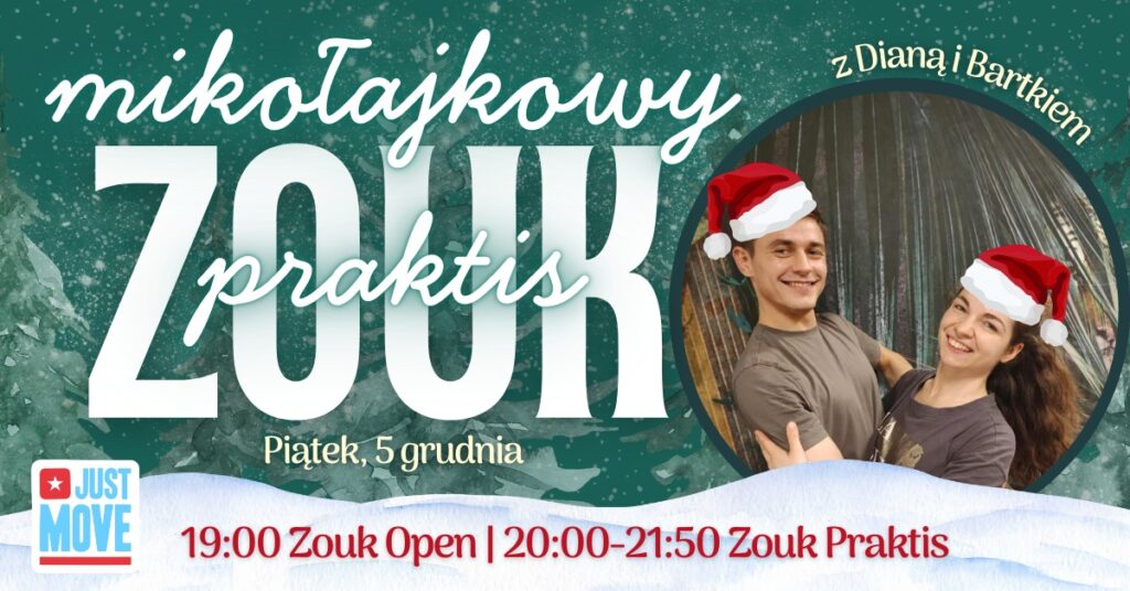 Ho ho ho Zoukeros! Zapraszamy na mikołajkowy Zouk Praktis z Dianą i Bartkiem🎅🏻💙