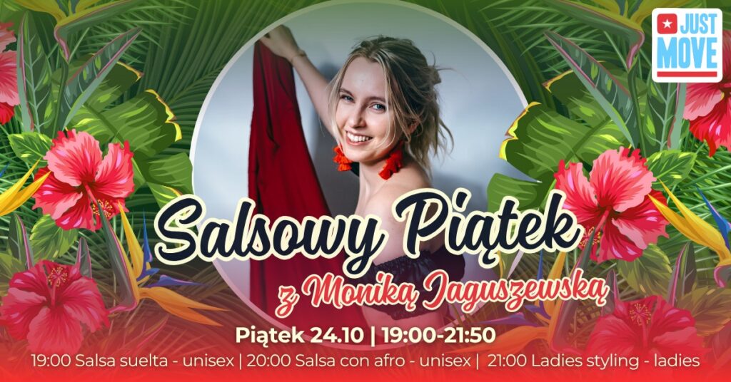 Tym razem zapraszamy Was na wyjątkowy salsowy piątek, ponieważ po raz pierwszy zajęcia poprowadzi u nas Monia!🔥Na co dzień możecie ją spotkać w Poznaniu, gdzie prowadzi zajęcia lub.. na naszych lokalnych salsowych festiwalach! ✨ 📆 Wpadajcie do Just Move w piątek 24.10 od godziny 19:00!Zajęcia są dla wszystkich niezależnie od poziomu zaawansowania 💪 📌 Program:19:00 […]
