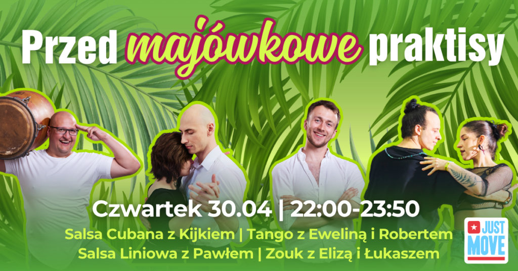 Zapraszamy serdecznie na przed majówkowy praktis z West Coast Swing z Asią i Damianem!Jeśli będziecie chcieli przećwiczyć konkretne figury, lub macie jakieś pytania to instruktorzy będą do Waszej dyspozycji i chętnie Wam pomogą 😎 📆 Środa 20:00-22:50 | 29.04 🏠 Adres: Szkoła Tańca Just Move, ul. Zelwerowicza 18A 💸 Płatność:👉 Multisport/ Fit Profit/ Medicover Sport […]