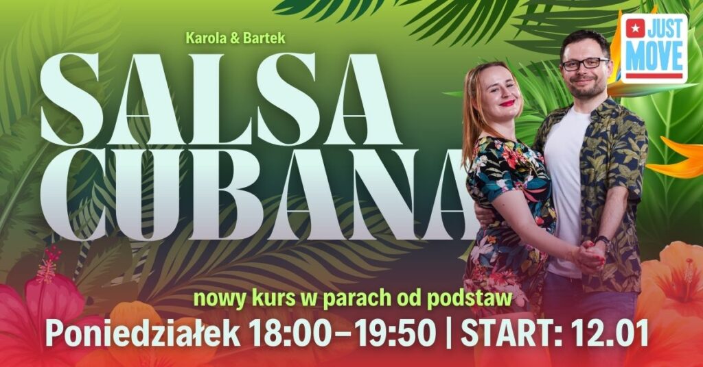 Nowe Kursy Zapisy na zajęcia Aktualny grafik znajduje się codziennie w relacji na naszym Facebook i Instagram!Zapraszamy do śledzenia nas w Social Media! NOWE KURSY STYCZEŃ START 08.01 – Zouk od podstaw z Olą i Akashem START 08.01 – Salsa Footwork z Pawłem OPEN START 09.01 – Lambada solo dla followerek z Marzeną – CYKL 4 ZAJĘĆ START 12.01 – Salsa Cubana od podstaw z Karolą i Bartkiem START 15.01 – Bodymovement & Timba Solo z Omarem – cykl 4 spotkań START 22.01 – Salsa Liniowa od podstaw z Adą i Pawłem START 22.01 – URBAN KIZZ od podstaw NOWE KURSY LUTY
