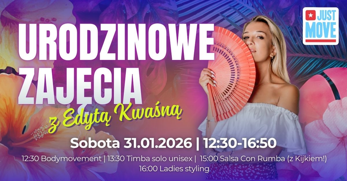 31.01 – 🎉 Urodzinowe zajęcia z Edytą Kwaśną w Just Move! 🎉