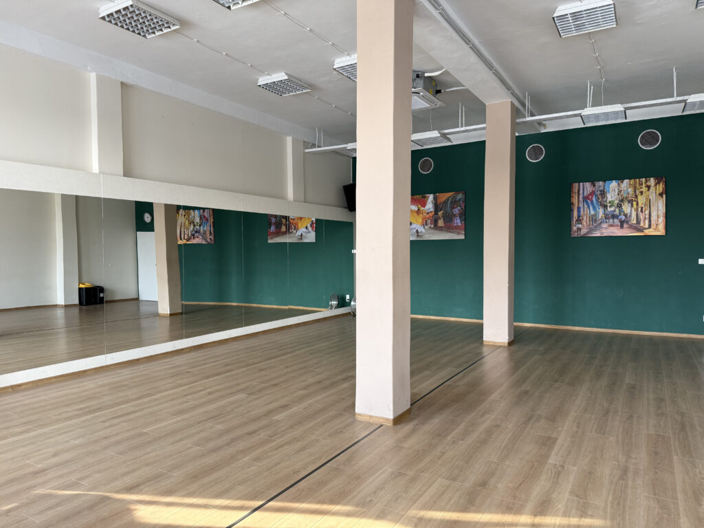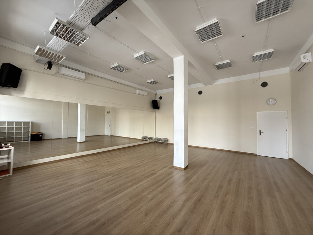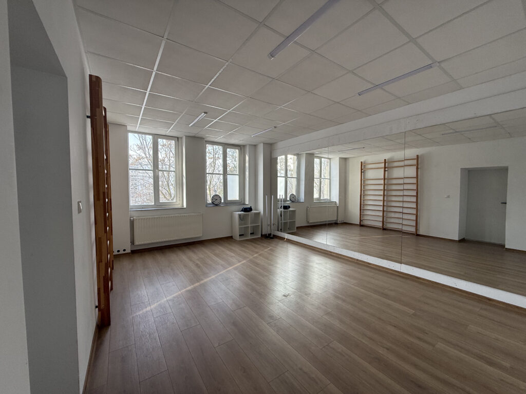 Każda nasza sala wyposażona jest w lustra obejmujące całą ścianę oraz nagłośnienie.
